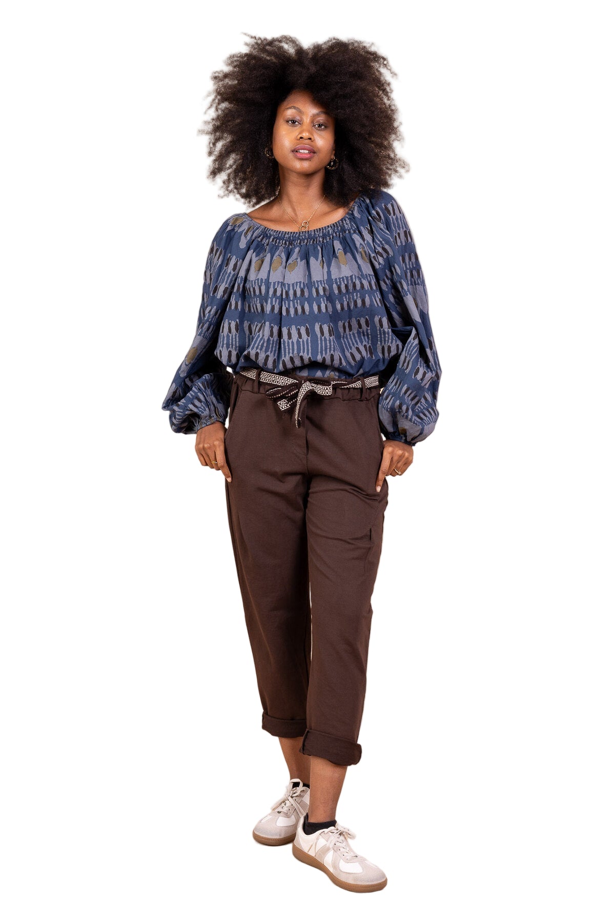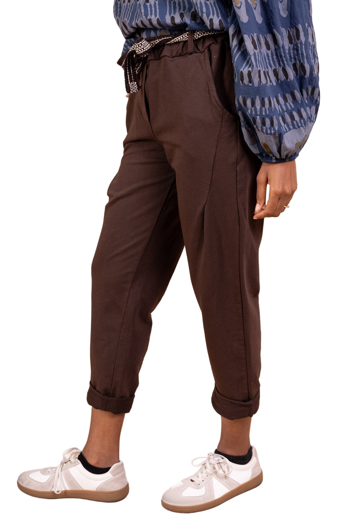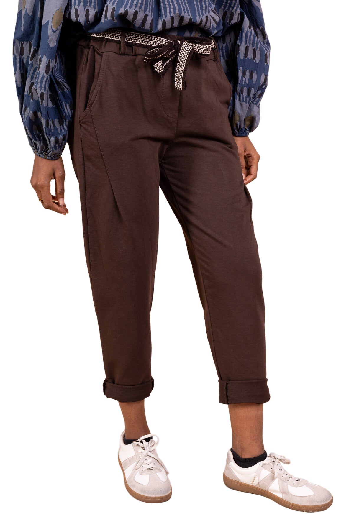 • Pantalon de jogging en coton avec ceinture, taille élastiquée, poches avant et arrière