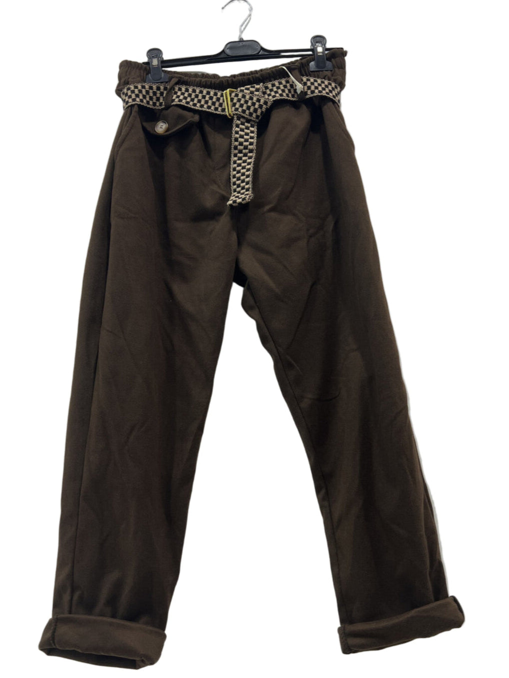 Découvrez l'alliance parfaite du confort et de l'élégance avec ce pantalon d'hiver italien élégant. Confectionné dans un doux mélange de viscose, polyester et élasthanne, il offre chaleur et coupe ajustée pour les tailles 40 à 46 (UK 12-18). Doté d'une ceinture élégante qui souligne la taille, ce pantalon crée une silhouette élégante idéale pour sublimer vos tenues d'automne et d'hiver d'une touche italienne authentique.