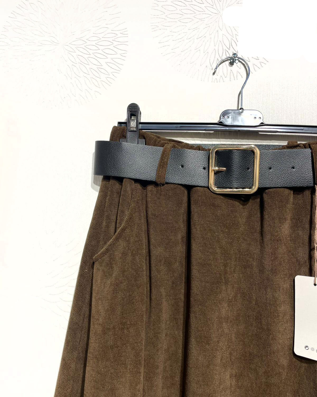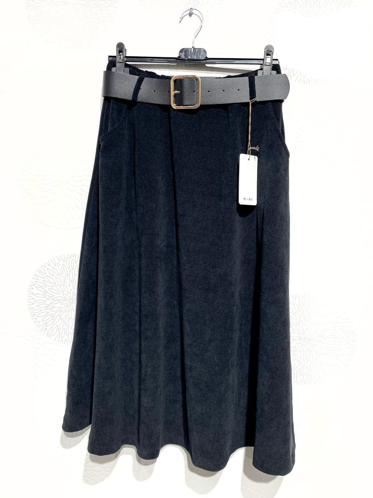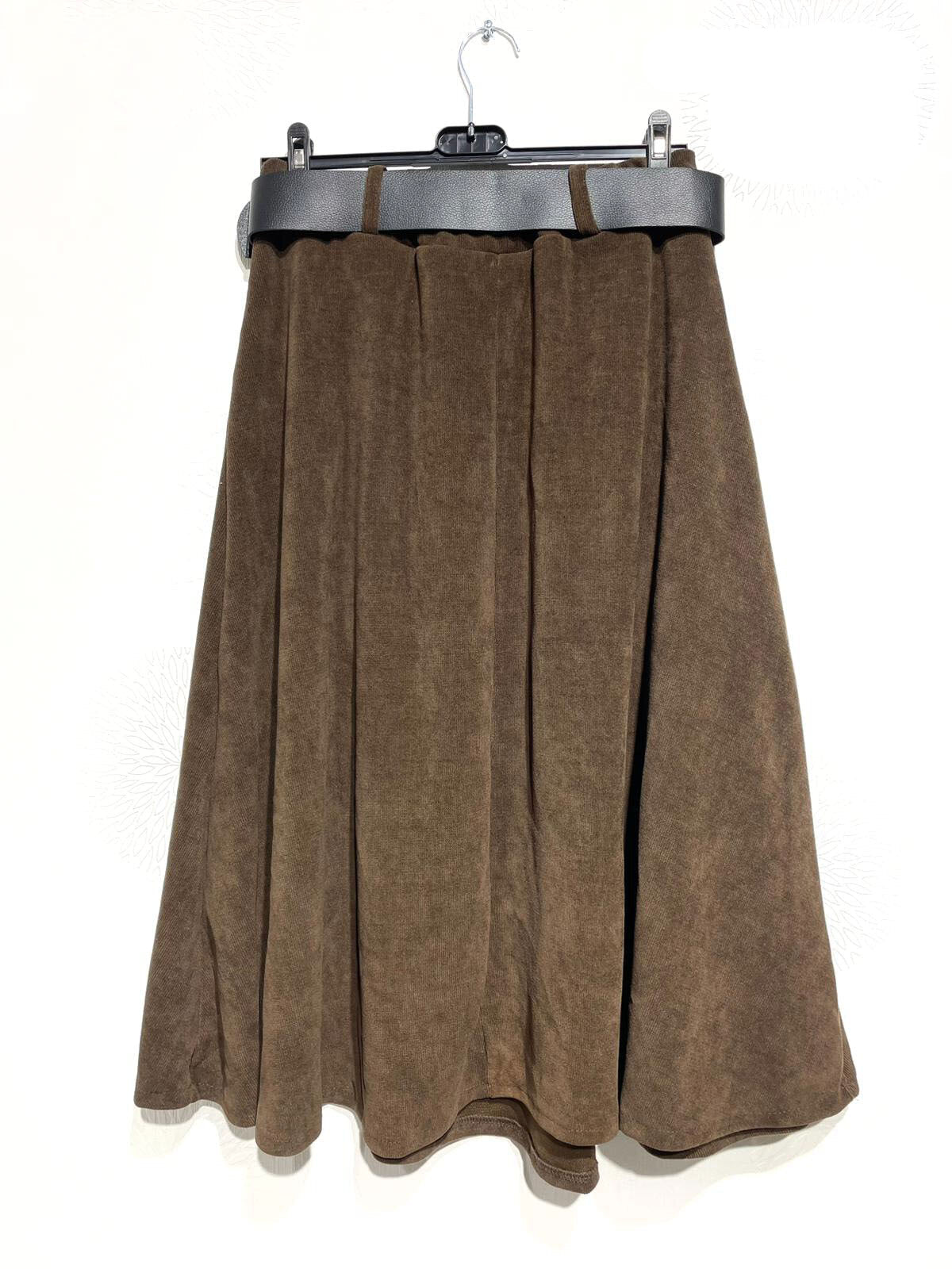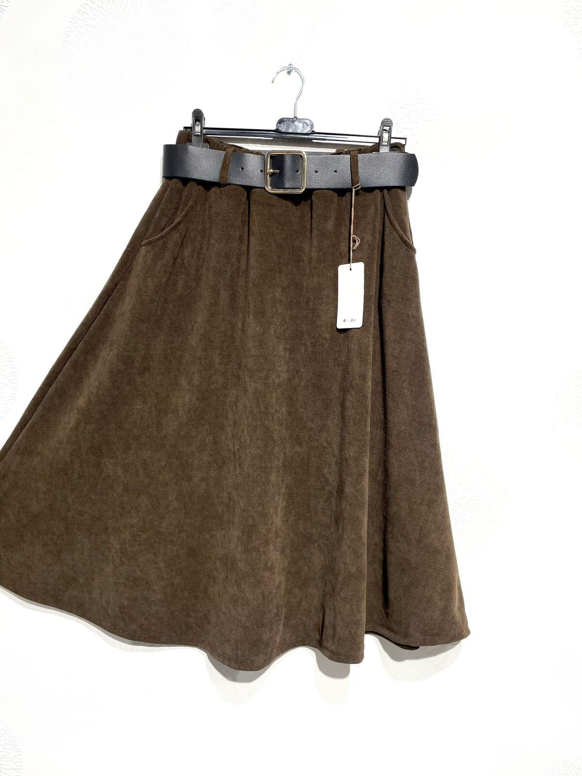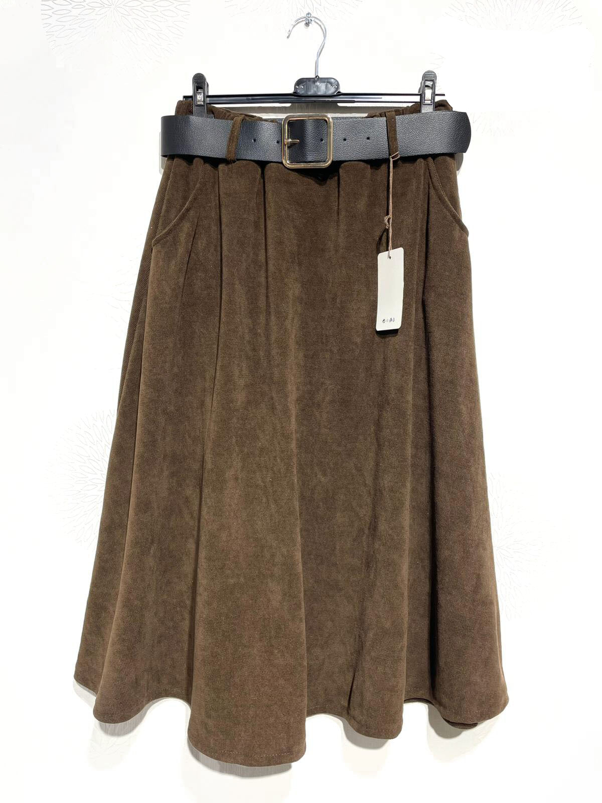 Jupe évasée en velours côtelé avec ceinture et poches