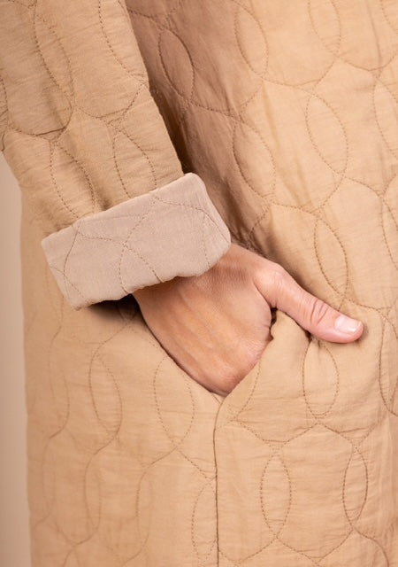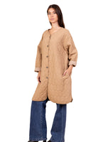 Ce long manteau matelassé léger, confectionné en 100 % coton, offre chaleur et confort grâce à sa matière naturelle respirante. Sa fermeture boutonnée lui confère un style classique tout en assurant un enfilage facile. Ses poches pratiques permettent de ranger facilement vos essentiels, ce qui le rend idéal au quotidien. Taille unique convenant aux tailles 40 à 44 (équivalent aux tailles 40 à 46 en France).