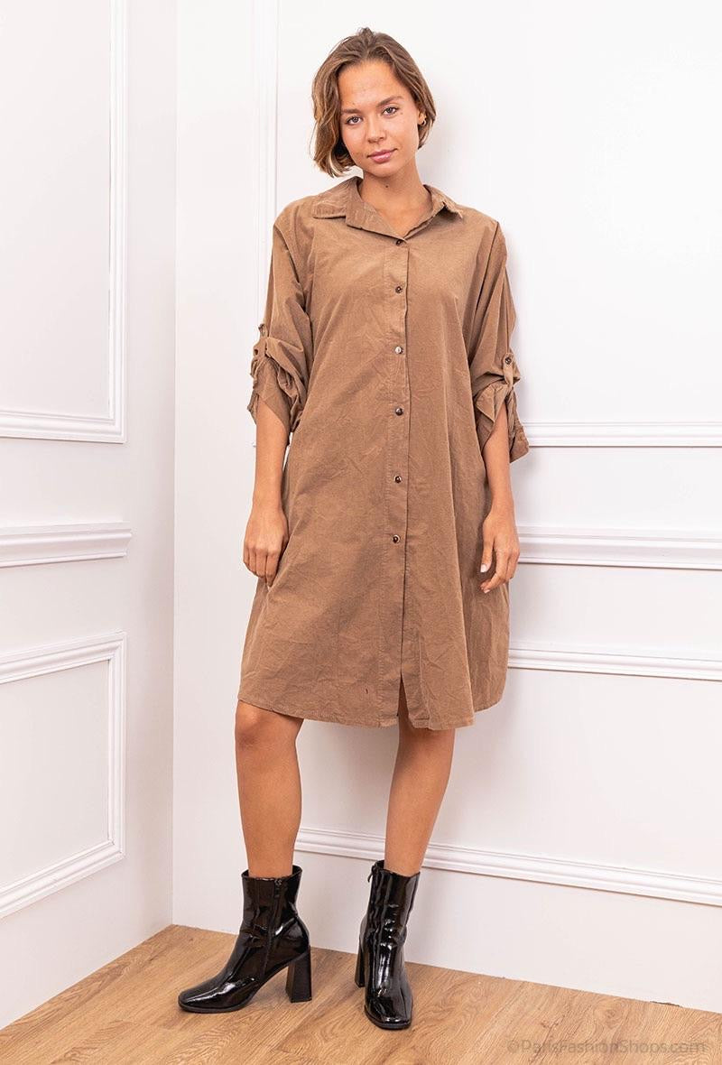 Robe tunique style chemise en velours côtelé fabriquée en Italie, taille unique