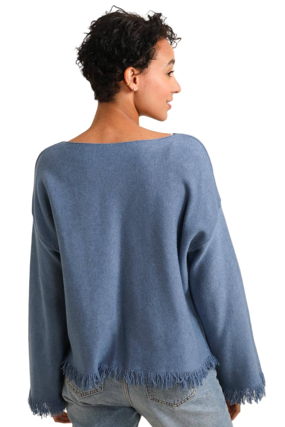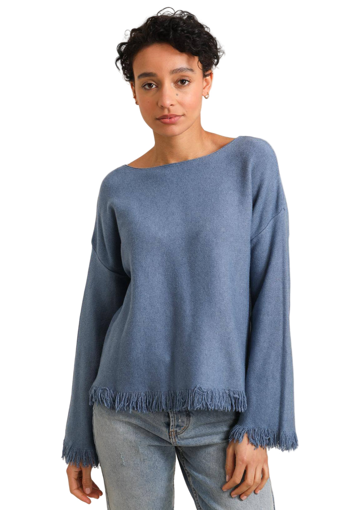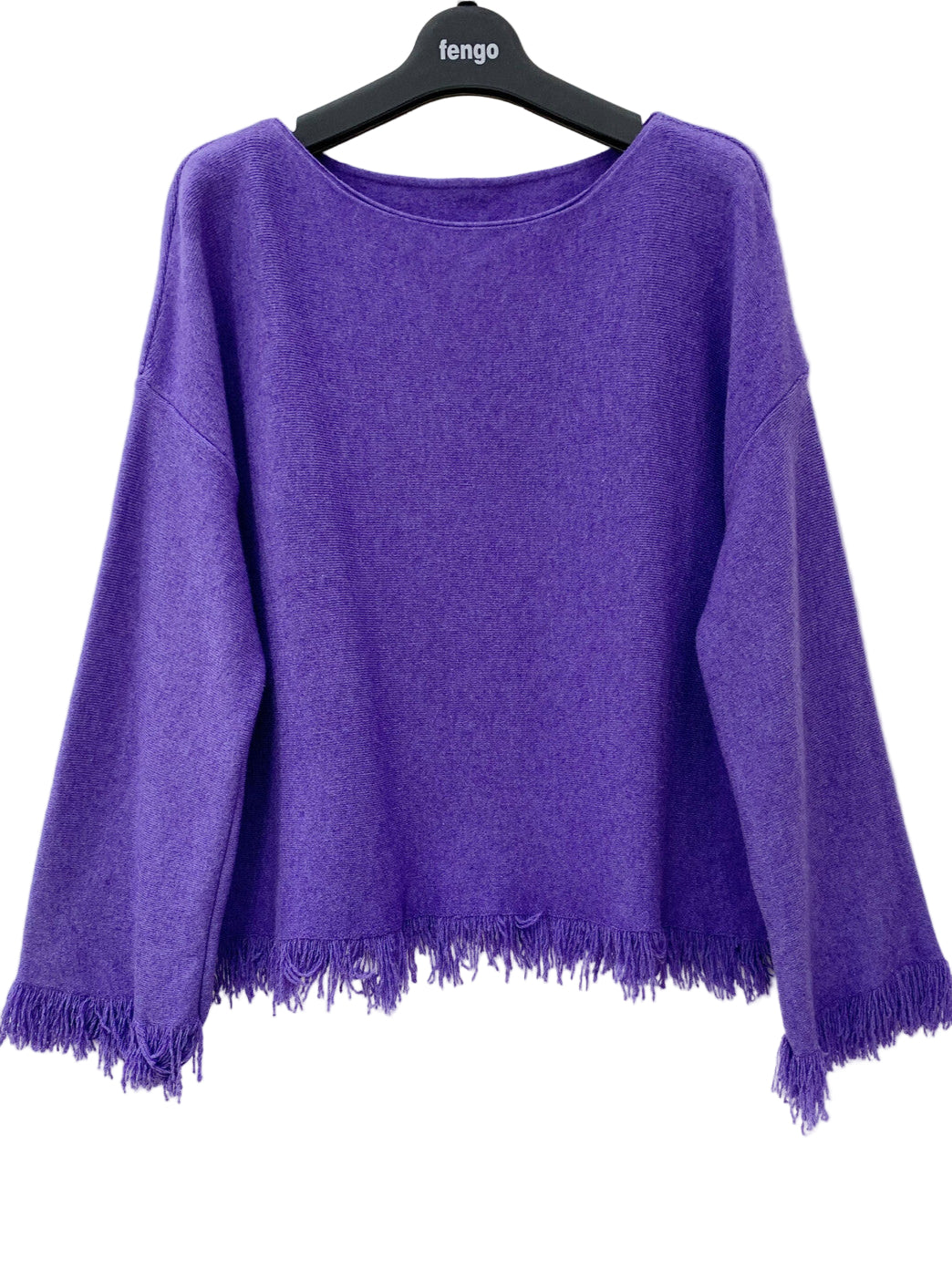 • Pull doux avec détail à franges sur les manches et l'ourlet
