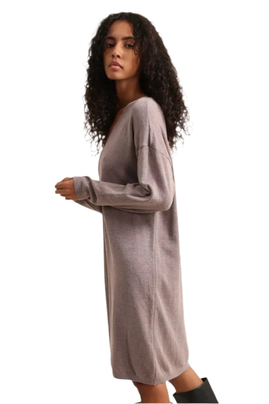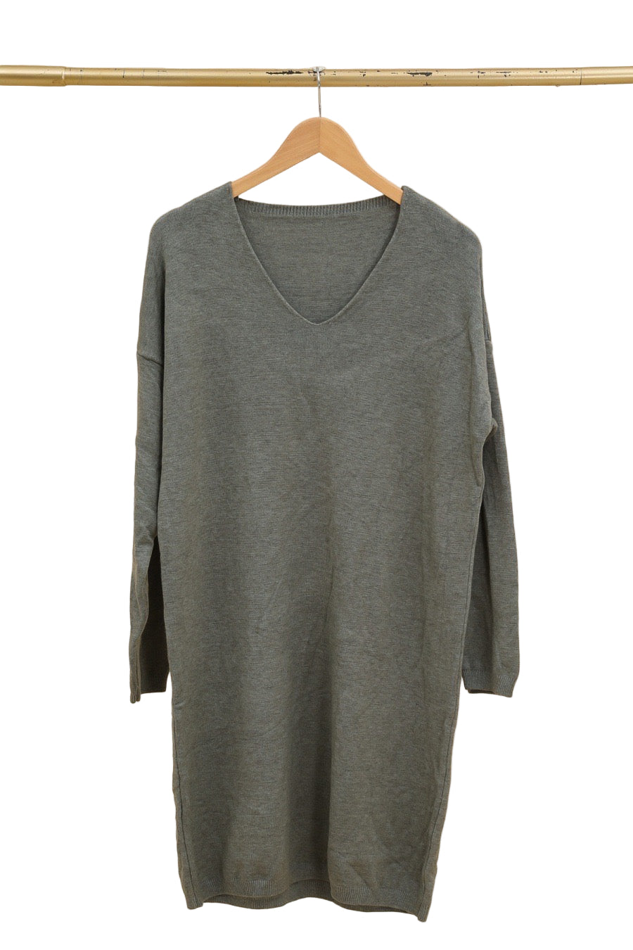 Robe pull italienne à col en V en mélange de cachemire, taille unique