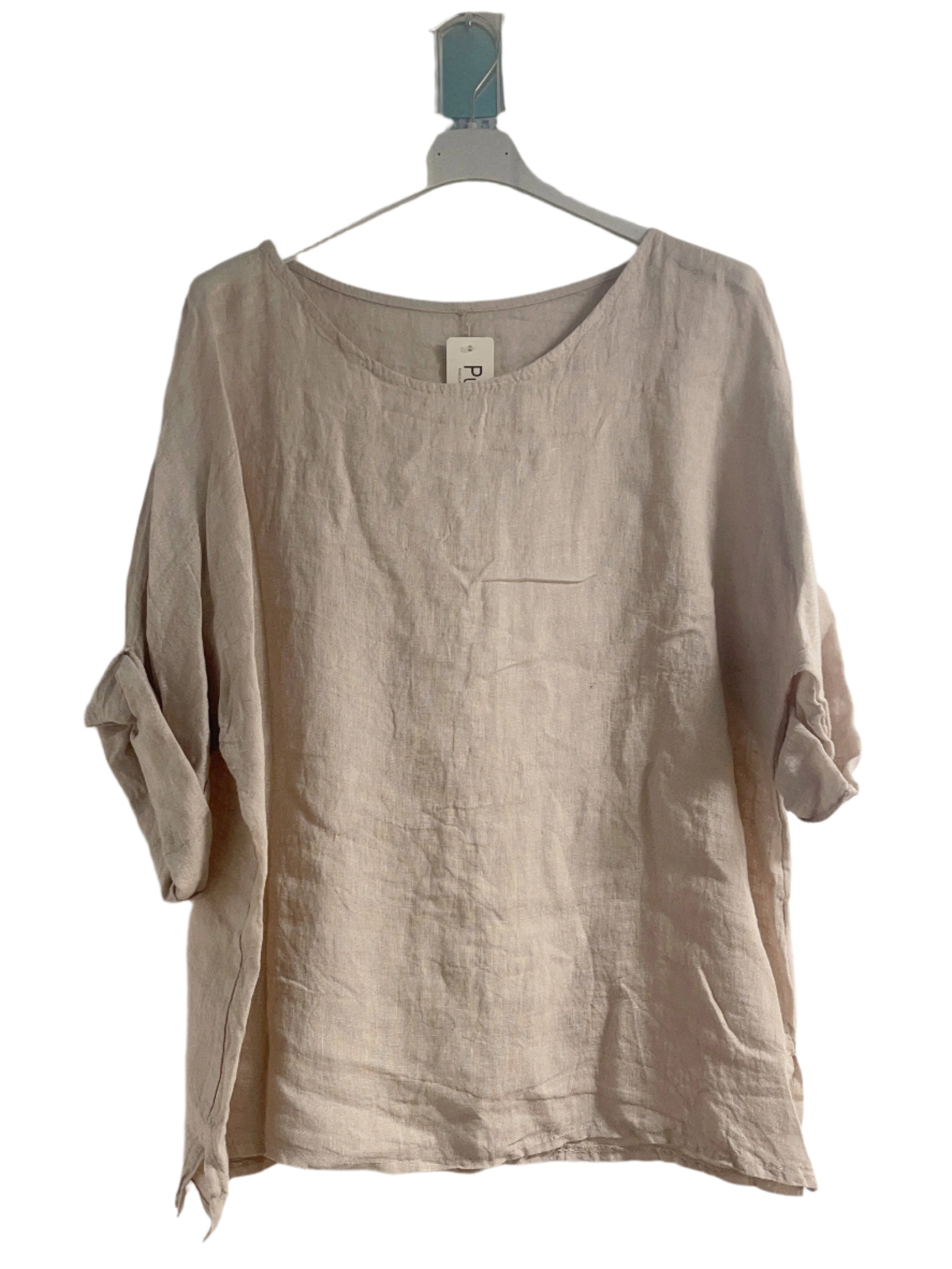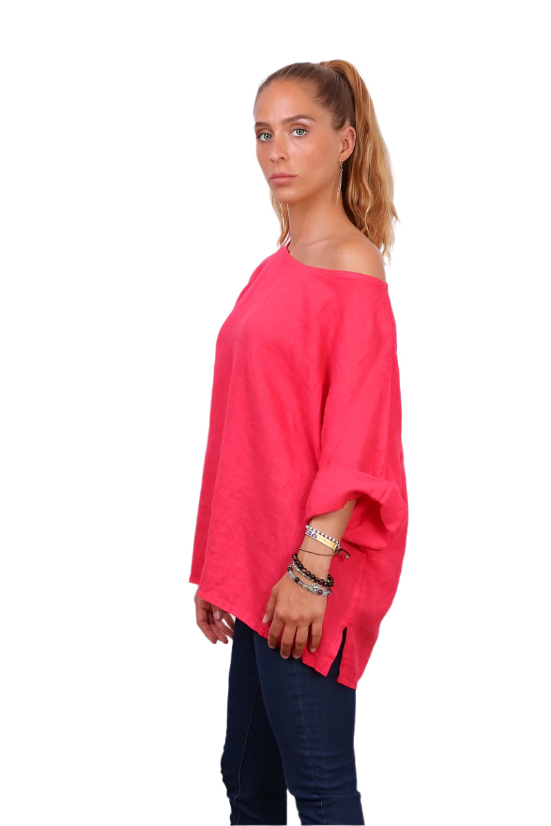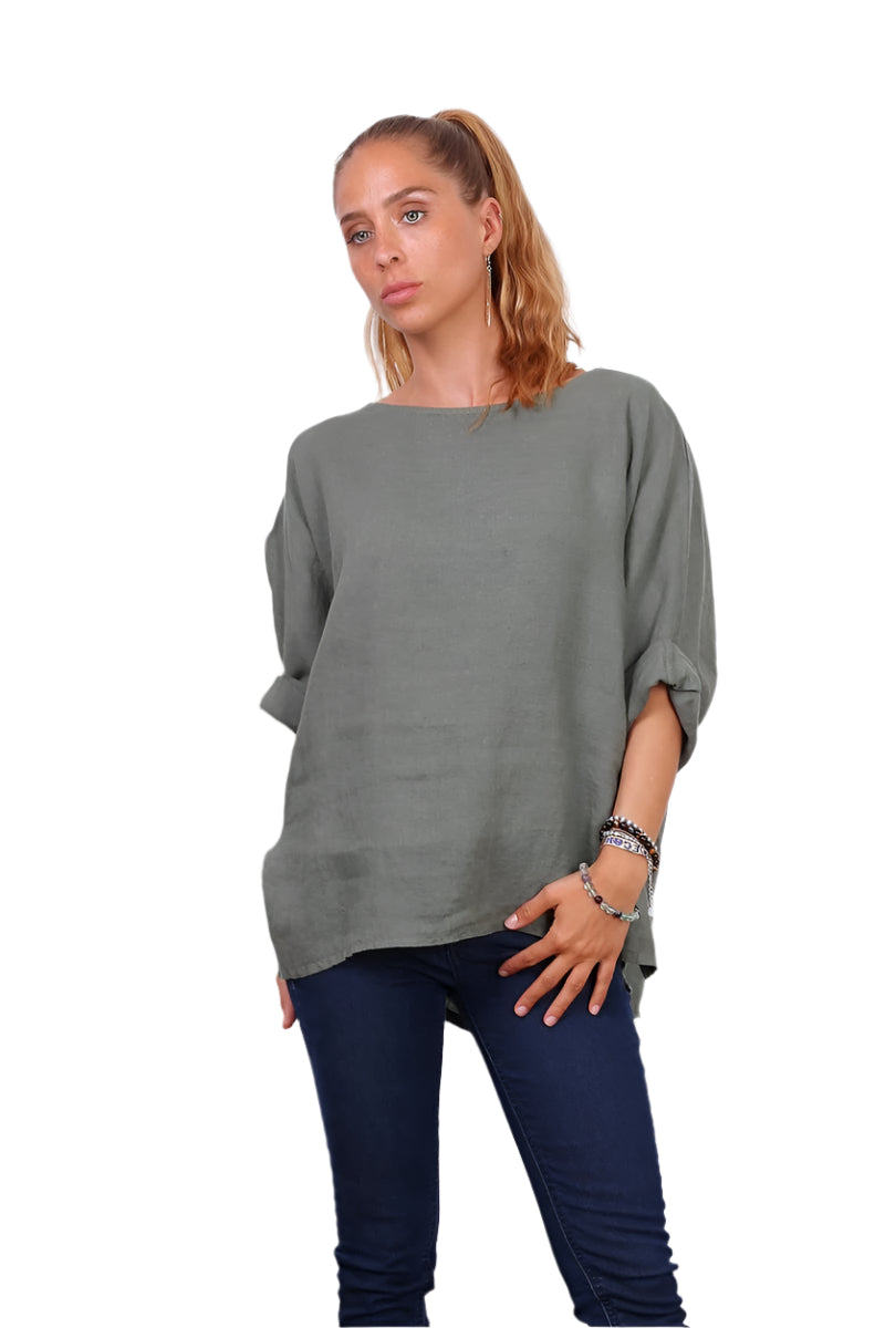 Notre top col rond en pur lin, taille unique et toujours aussi populaire ! Fabriqué en Italie en 100 % lin, ce modèle essentiel offre une coupe confortable pour les tailles 42 à 48 (UK 14 à 20). Avec sa variété de couleurs, ses manches trois-quarts et son design polyvalent, il est un atout indispensable pour votre garde-robe !