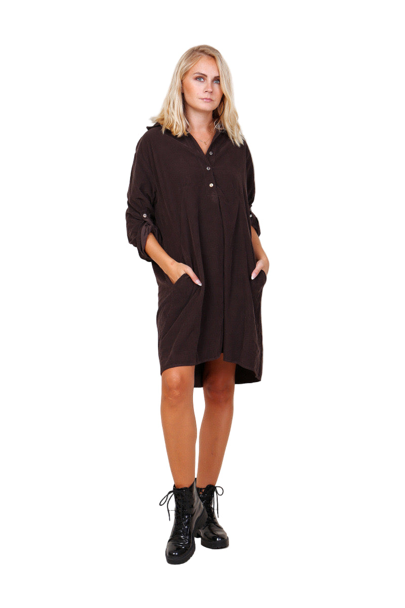 Sublimez votre style avec notre robe courte en velours côtelé, confectionnée en Italie, toujours aussi populaire ! Dotée d'un ourlet droit, de poches avant et de manches longues avec fermeture boutonnée, elle vous offre un look chic et fonctionnel. 100 % coton, elle est confortable et idéale pour les tailles 40 à 44 (12 à 16 UK). Un incontournable pour toute garde-robe tendance !