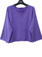 - Pull court à col rond et manches 3/4 en forme de trompette