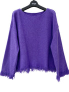 - Pull doux avec détail à franges sur les manches et l'ourlet